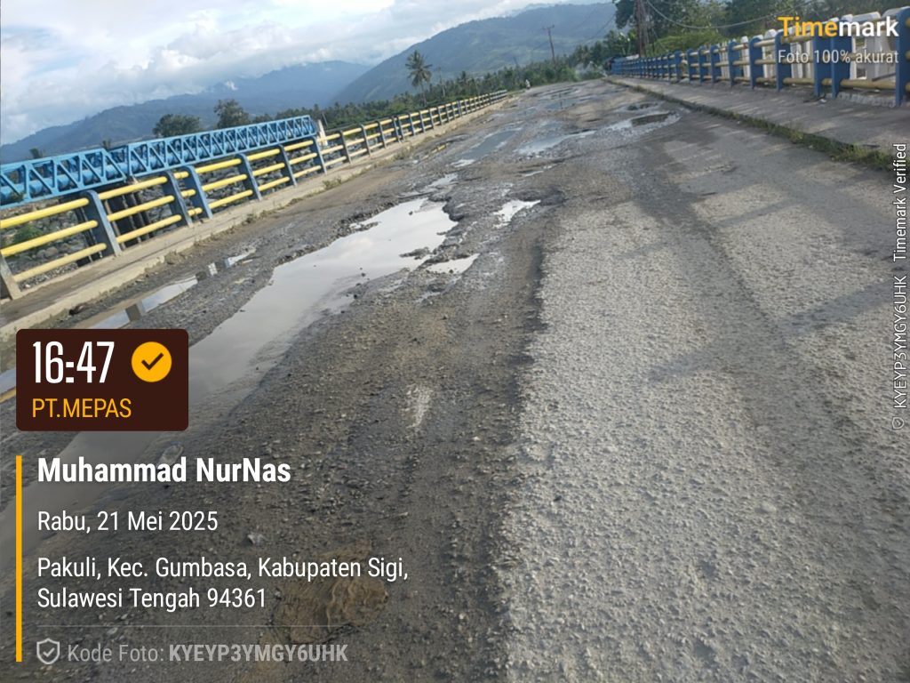 Portalmetro.id,Sigi (Sulteng) — Rusaknya jalan menjadi salah satu penyebab terjadi kecelakaan yang tidak diinginkan,terpantau sangat jelas jalan provinsi poros palu – kulawi menghubungkan antar desa, yaitu desa Pandere, desa Kalawara dan Kecamatan Gumbasa Kabupaten Sigi Provinsi Sulawesi tengah, jalannya rusak dan berlubang,pada Rabu (21/5/2025).