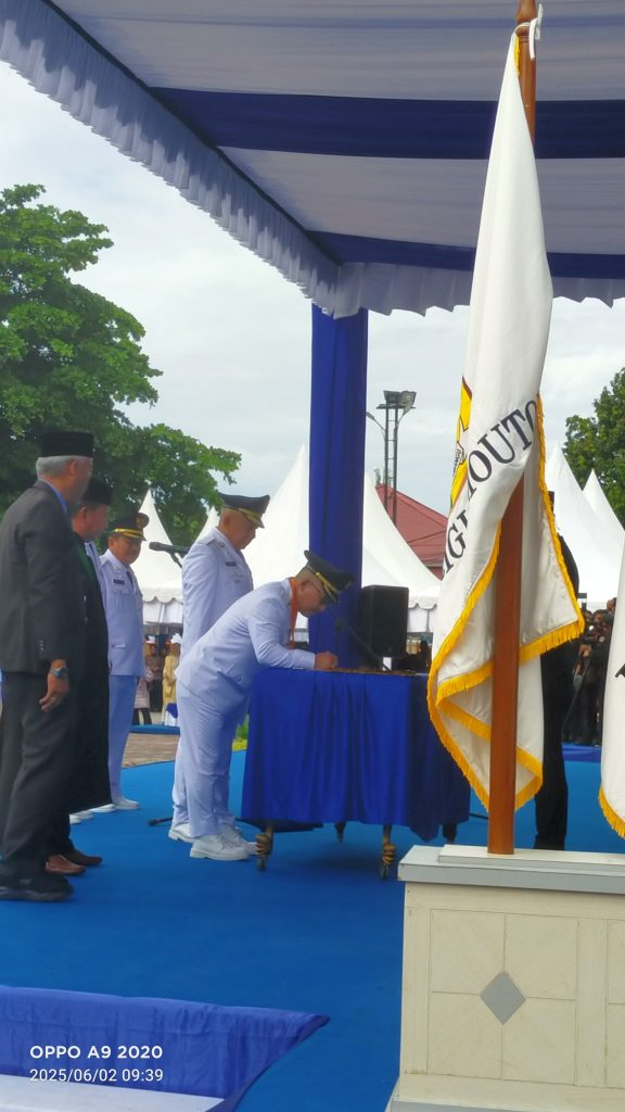 Pelantikan dan Pembacaan sumpah jabatan dihadiri dr.Reny A.Lamadjido (Wagub Sulteng) berlangsung di halaman Kantor Gubernur Provinsi Sulawesi tengah,pada Senin (2/6/2025).Setelah Upacara memperingati Hari Lahir Pancasila.