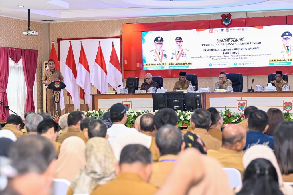 PORTALMETRO.ID, Banggai – Gubernur Sulawesi Tengah, Dr. H. Anwar Hafid, M.Si., menekankan pentingnya sinergitas antara Pemerintah Provinsi dan Pemerintah Kabupaten dalam penyelenggaraan pemerintahan, pembangunan, serta pelayanan masyarakat. Hal itu disampaikan dalam Rapat Kerja Pemerintah Provinsi Sulteng bersama Pemerintah Kabupaten Banggai, yang berlangsung di Ruang Rapat Umum Kantor Bupati Banggai, pada Senin (25/8/2025).
