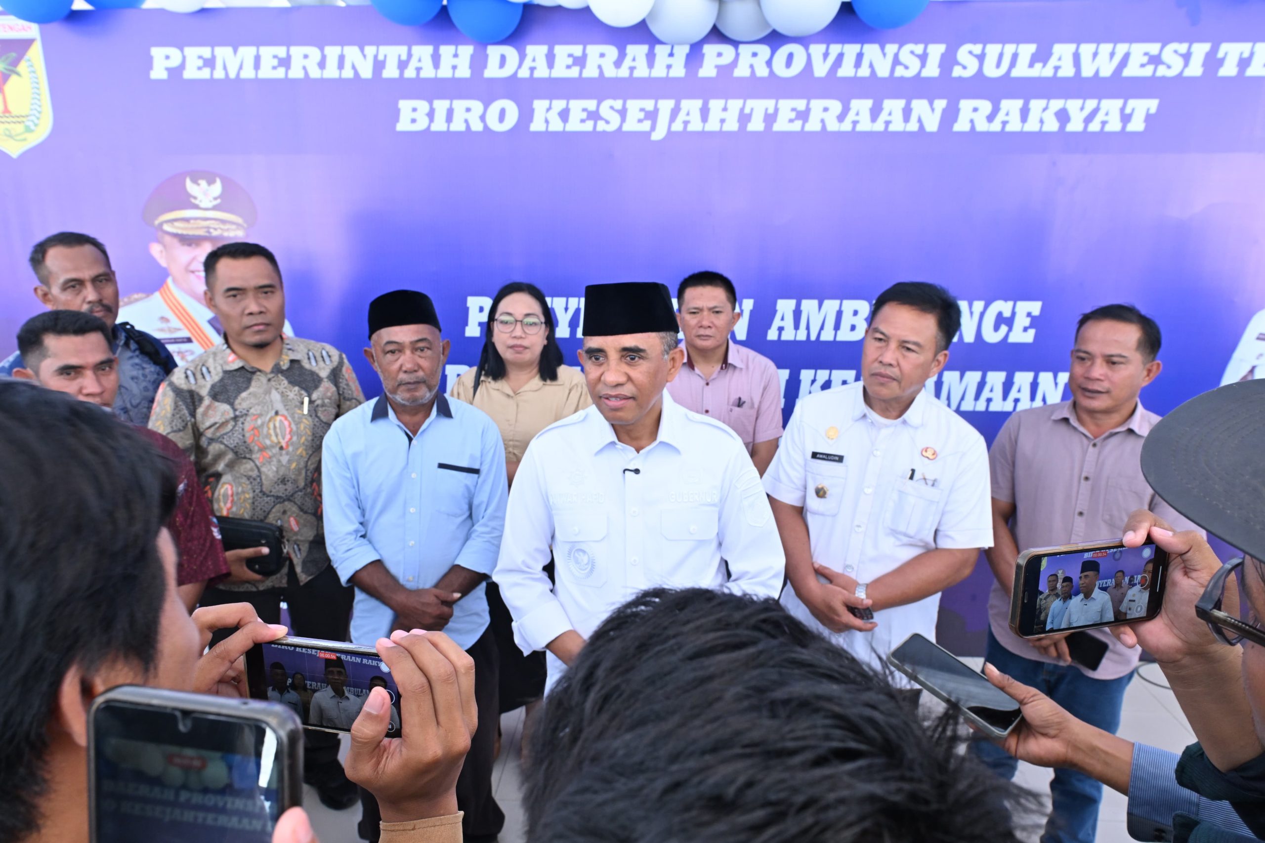 PORTALMETRO.ID, Palu — Gubernur Sulawesi Tengah, Dr. H. Anwar Hafid, M.Si., Menyerahkan Sebanyak 19 unit Mmbulance bantuan hibah keagamaan kepada rumah ibadah serta lembaga, organisasi, dan yayasan keagamaan di Sulawesi Tengah. Penyerahan dilakukan di Lapangan Pogombo, Kantor Gubernur Sulawesi Tengah, pada Rabu siang (12/11/2025).