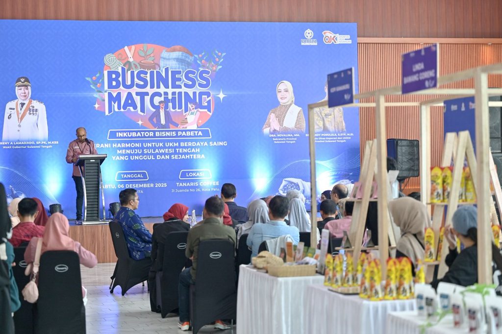 PORTALMETRO.ID, Palu — Gubernur Sulawesi Tengah diwakili Sekretaris Daerah Dra. Novalina, M.M., Membuka kegiatan Business Matching, Ingkubator Bisnis Pabeta dengan tema “Berani Harmoni Untuk UMKM Berdaya Saing Menuju Sulawesi Tengah Yang Unggul Dan Sejahtera” yang digelar di Tanaris Coffee, Sabtu (06/12/2025).