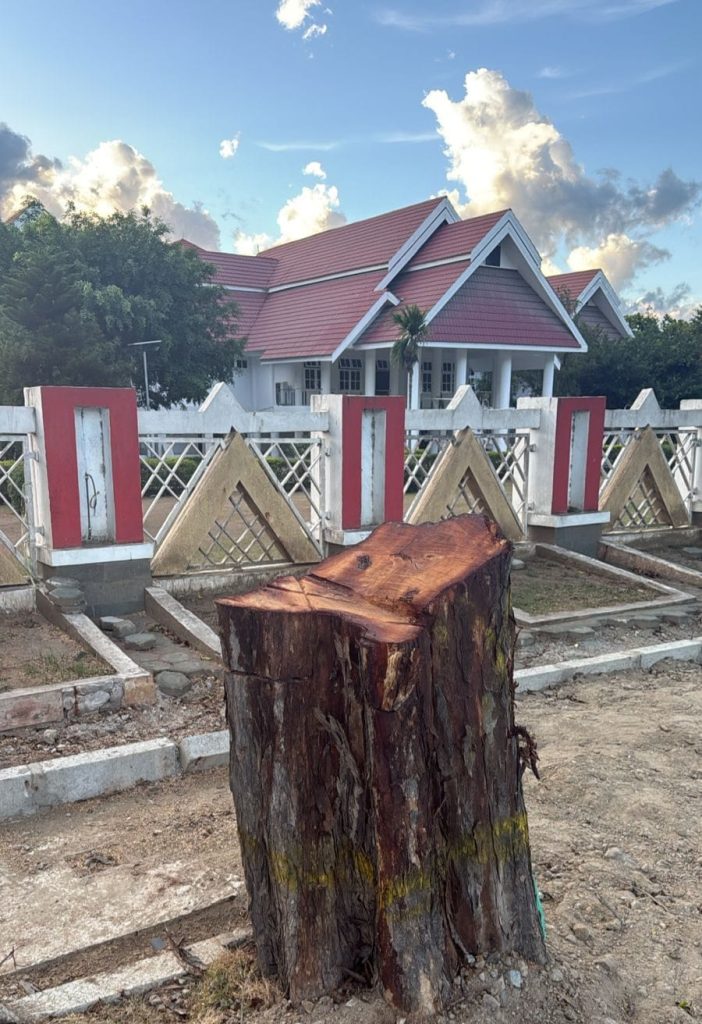 PORTALMETRO.ID, Palu – Pohon peneduh jalan di depan rumah jabatan (Rujab) Gubernur Sulawesi Tengah (Siranindi II) di jalan Prof M.Yamin ditebang orang.