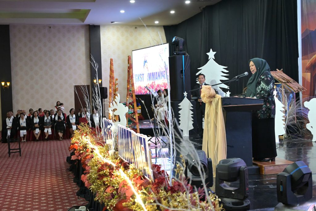 PORTALMETRO.ID, Palu — Wakil Gubernur Sulawesi Tengah dr. Reny A. Lamadjido, Sp.PK., M.Kes. menghadiri Perayaan Natal Jemaat Gereja Kristen Sulawesi Tengah (GKST) Immanuel Palu yang digelar di Ballroom Merry Glow Palu, Rabu malam (24/12/2025).