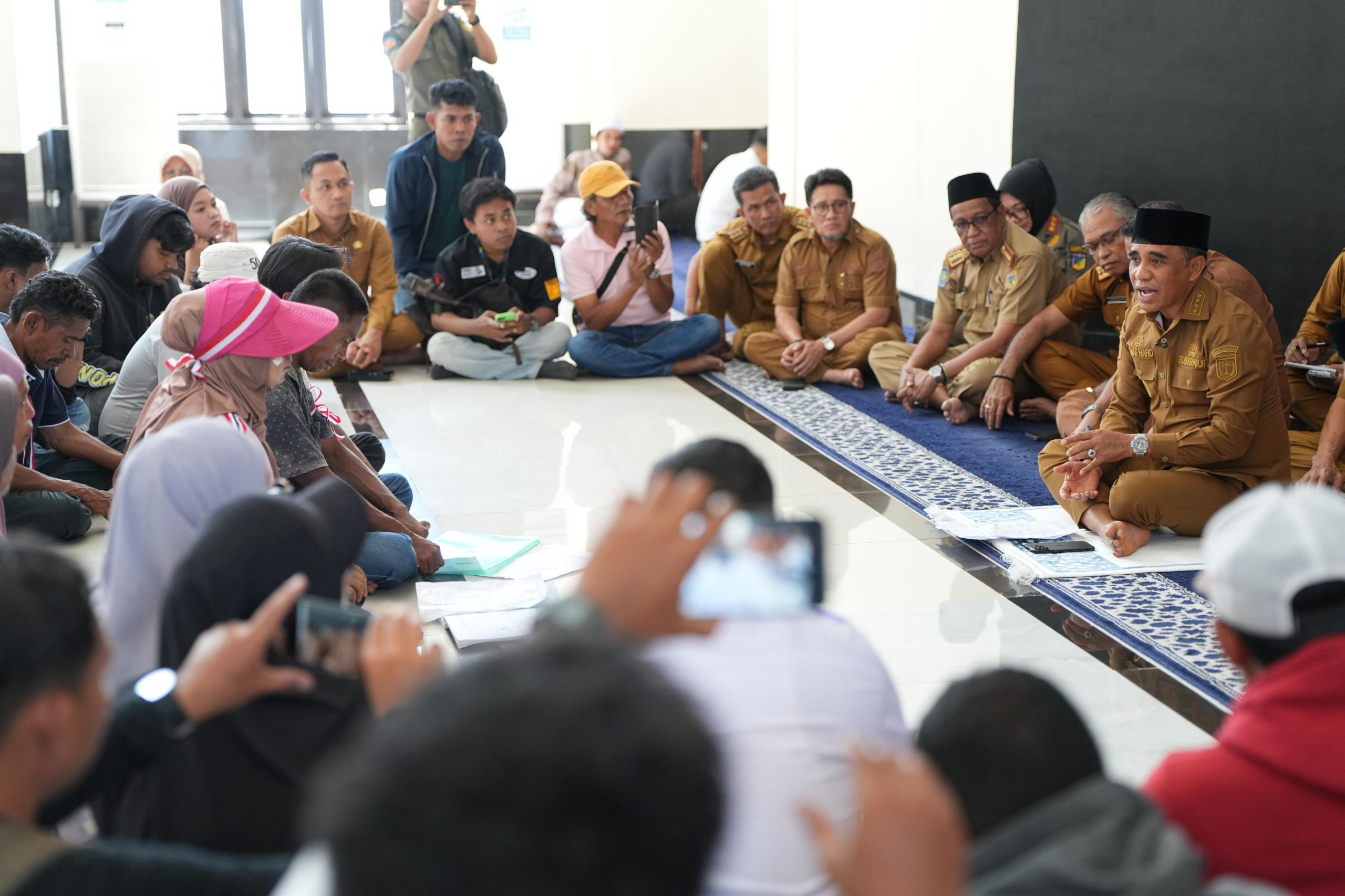 PORTALMETRO.ID, Palu – Gubernur Sulawesi Tengah,Dr. H. Anwar Hafid, M.Si., menemui langsung aksi demonstrasi Aliansi Masyarakat Desa Loli Oge usai sholat Dzuhur di Masjid Kantor Gubernur Sulawesi Tengah, Senin (29/12/2025). Warga datang menuntut pencabutan izin tambang batuan mineral yang dinilai merampas ruang hidup dan melanggar hak tanah masyarakat.