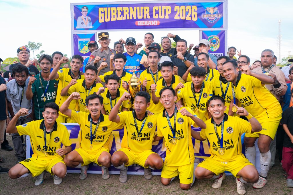 PORTALMETRO.ID, Parimo – Gubernur Sulawesi Tengah Dr. H. Anwar Hafid ,M.Si ,secara resmi menutup Turnamen Sepak Bola Gubernur Cup Berani 2026 yang digelar di Lapangan Sepak Bola Patriot, Desa Bambalemo, Kecamatan Parigi, Kabupaten Parigi Moutong, Senin (16/2/2026).